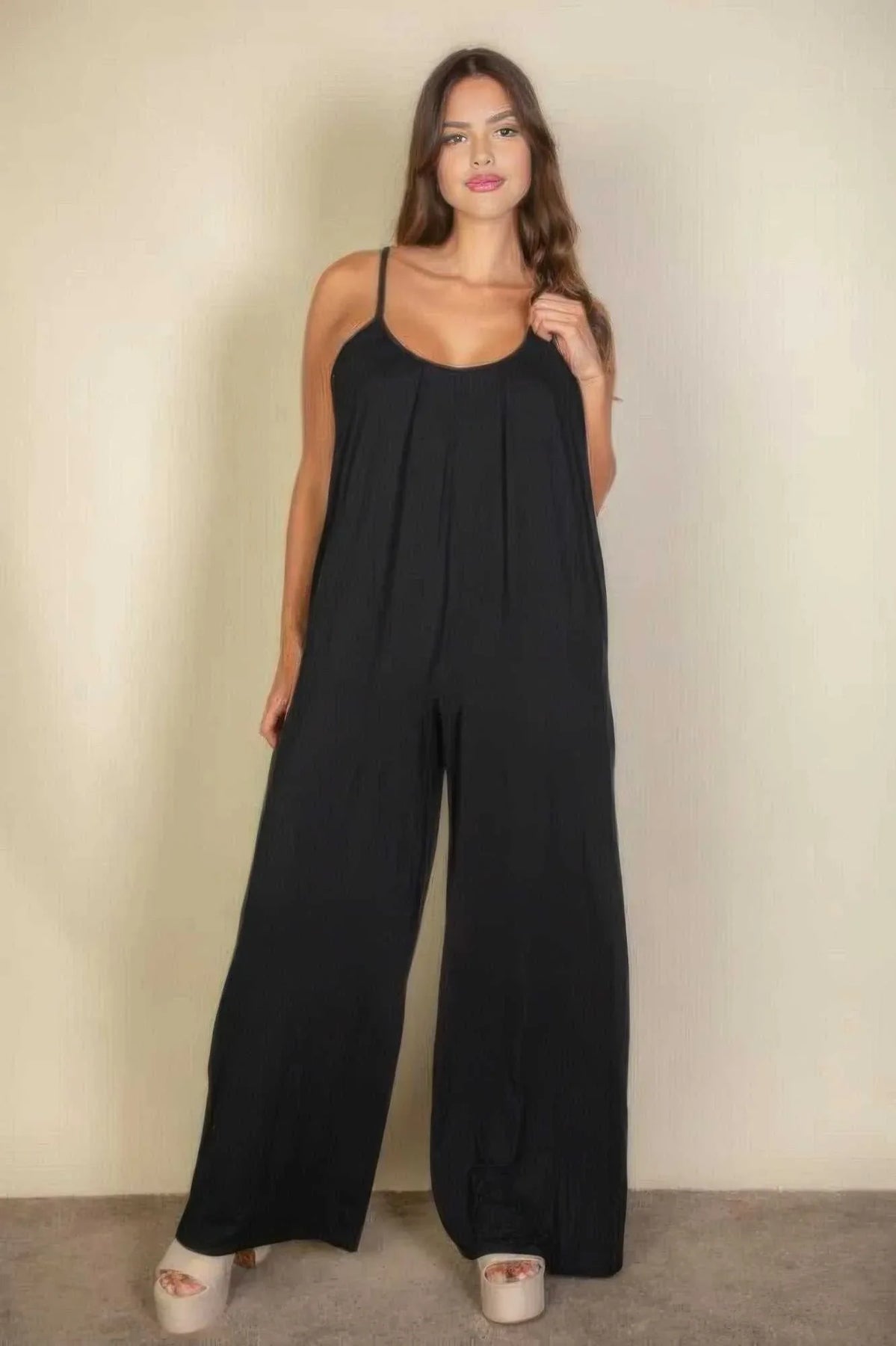 Plus spaghetti strap solid wide jumpsuit - PANTERA STORES