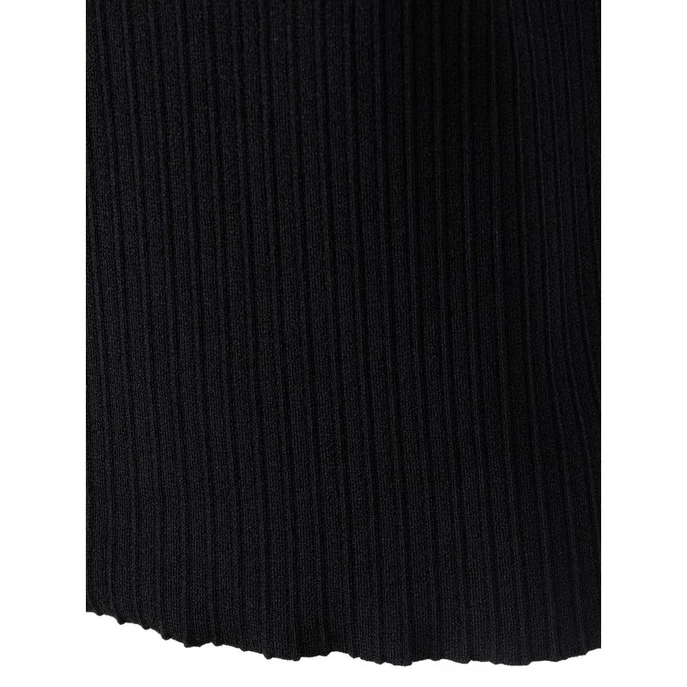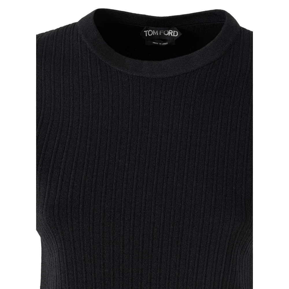 Tom Ford Stretch Ribbed Sweater. In black, cropped with raw cut effect at the bottom, short sleeve, slim.
