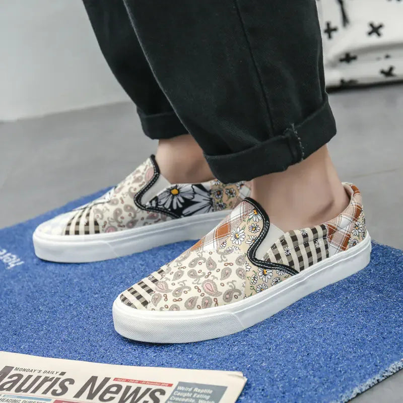 Introducing the Trendy Slip-On Patchwork Cashew Flower Canvas Shoes - your new favorite product from Pantera Stores.