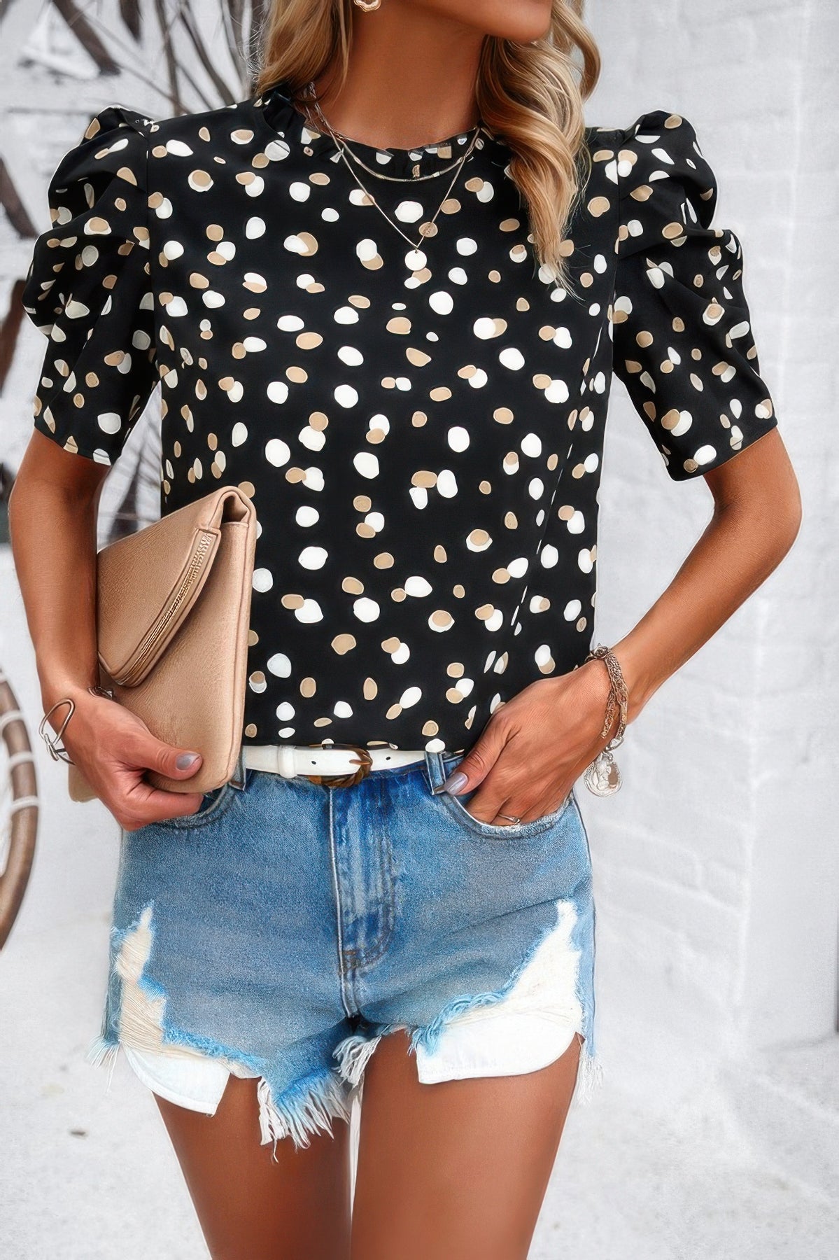 Puff Sleeves Allover Print Knot Loose Fit Top