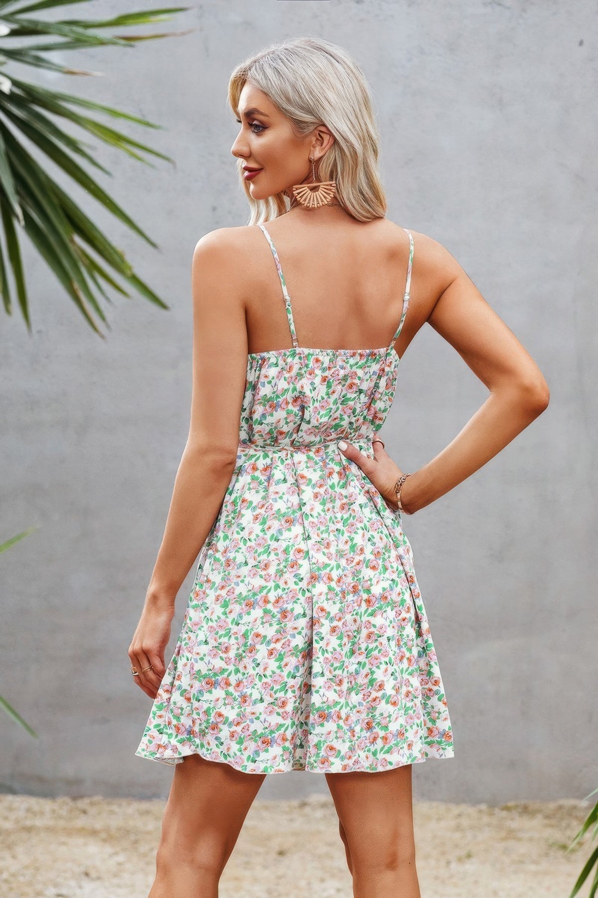 Fresh and flirty, this floral mini dress brings playful charm to your warm-weather wardrobe. Designed with a sleeveless cut and A-line silhouette, it offers a flattering fit that moves with ease. The ruffle hem adds a soft, feminine touch, while the vibrant floral print makes it perfect for sunny days. Made from a comfortable blend of polyester and spandex, this dress offers just the right amount of stretch for all-day wear. Whether you're heading to brunch, a picnic, or a weekend getaway, this mini dress is an easy choice for effortless style.