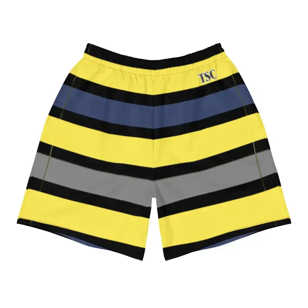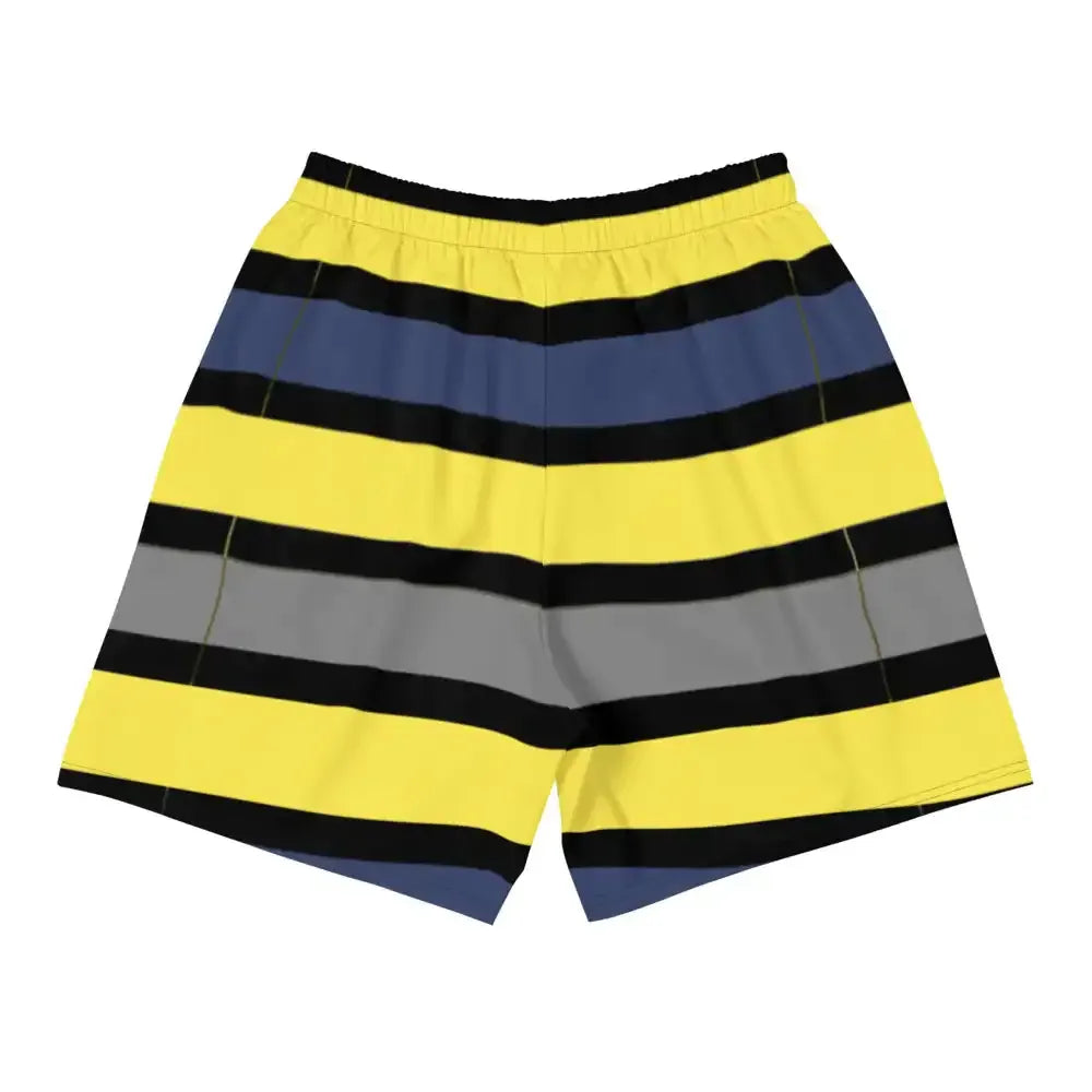 Each order includes your carefully packaged men's tropical dark blues/yellow long shorts, ready to enhance your collection.