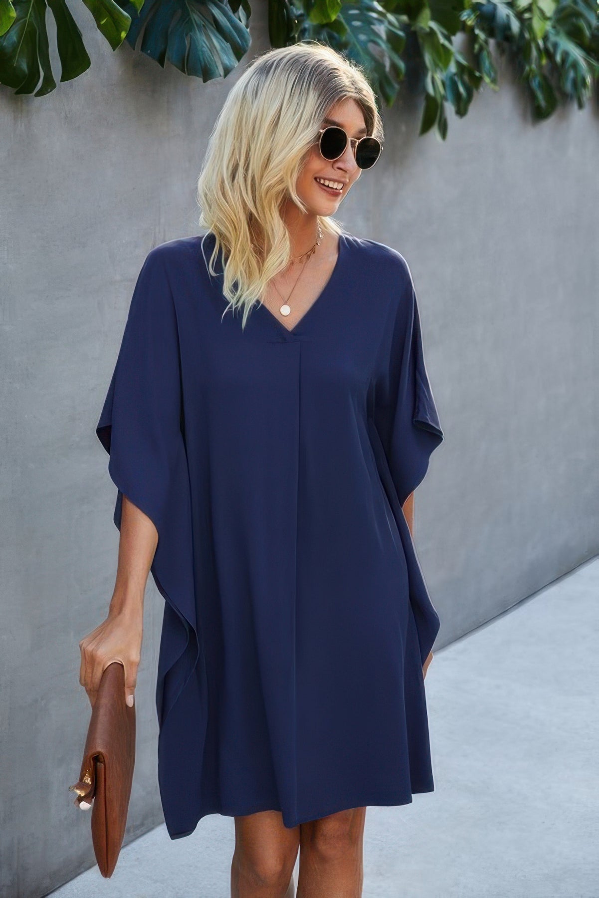 Introducing the V Neck Solid Short Sleeve Dress - your new favorite product from Pantera Stores.