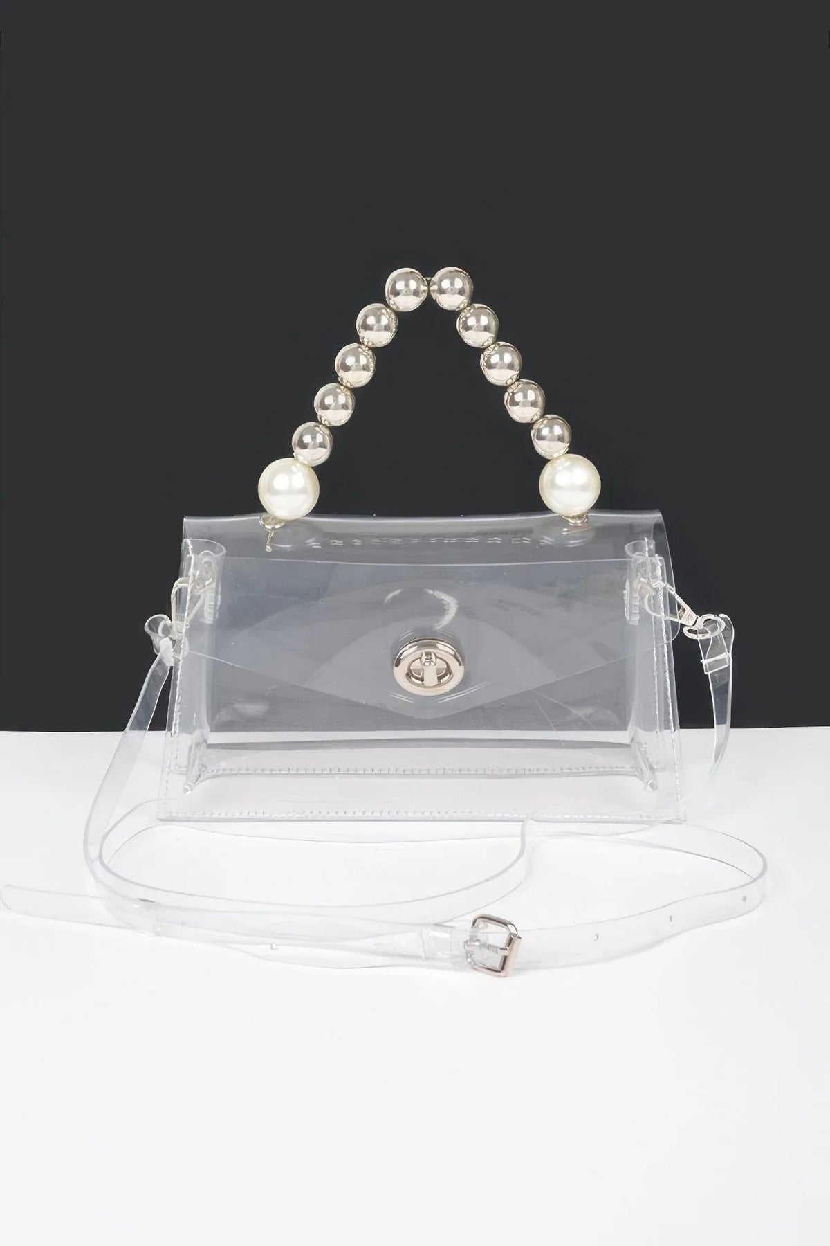 Introducing the Transparent Ccb Handle Flap Clutch - your new favorite product from Pantera Stores.