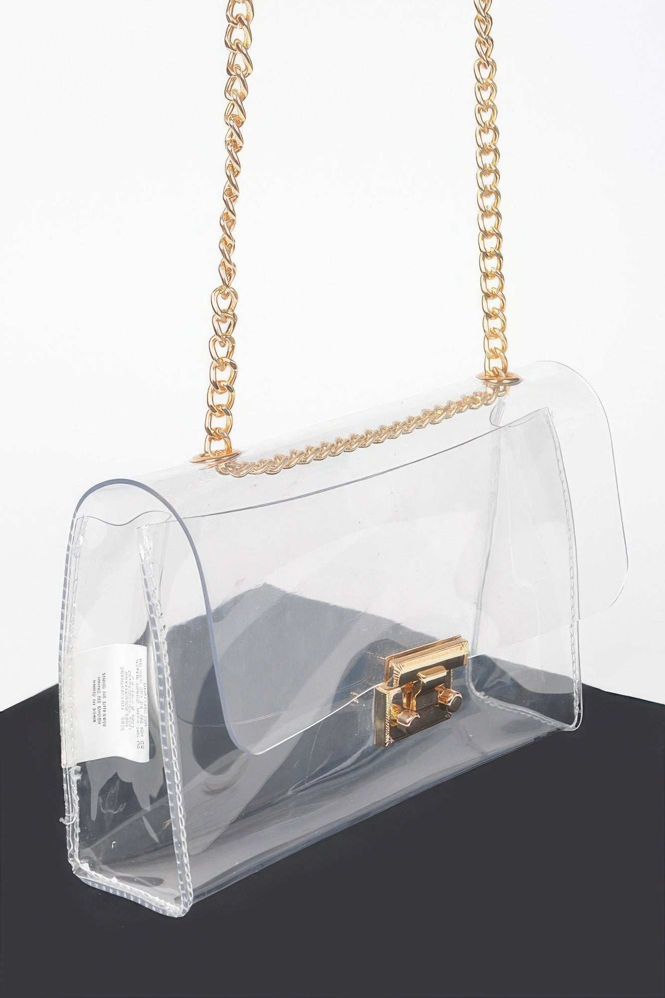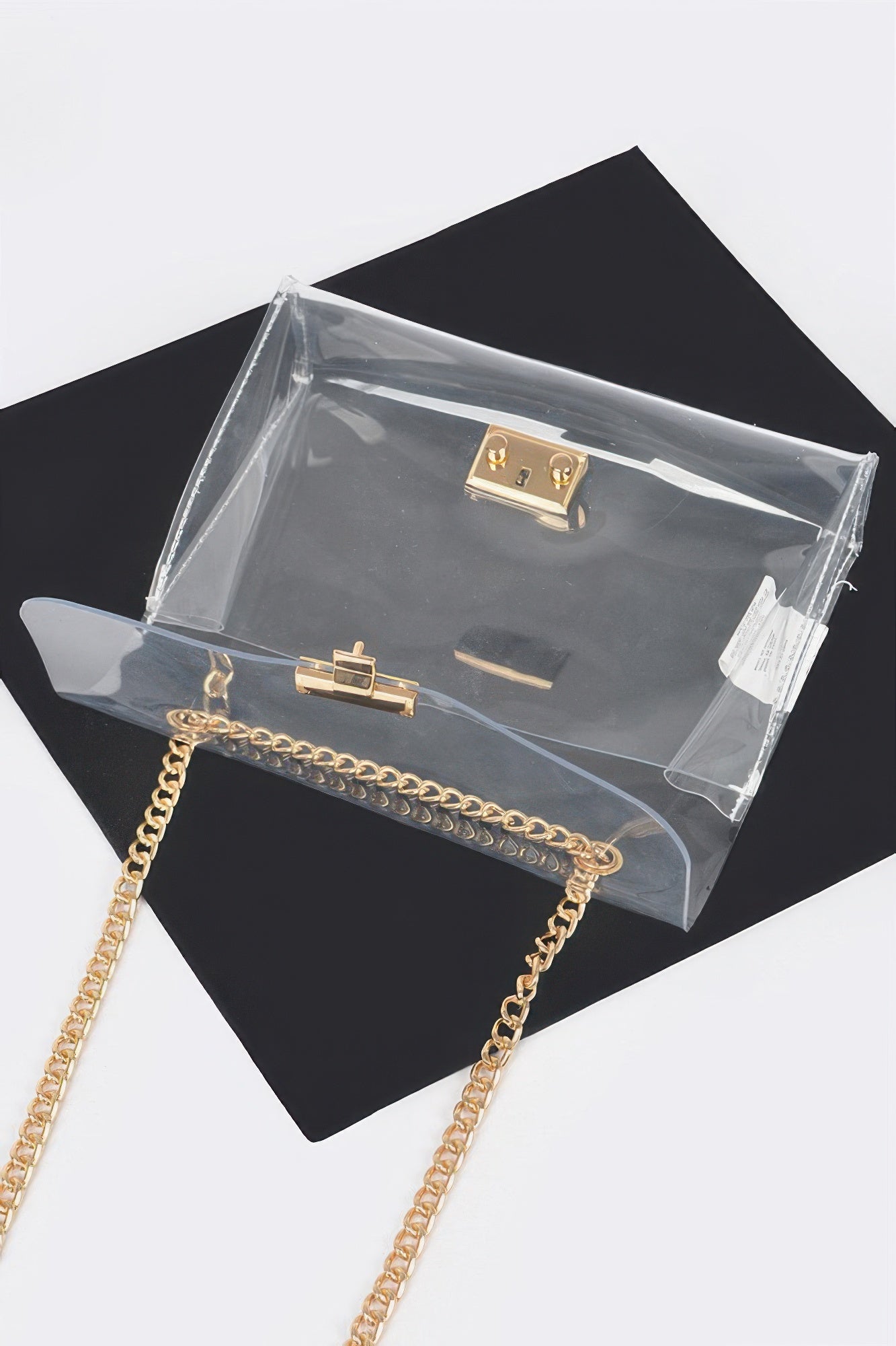 Make a sleek, fashion-forward statement with the GlimmerLink Crossbody Bag, a transparent design that merges modern minimalism with everyday functionality. Crafted from durable PVC, this clear bag keeps your essentials visible and organized while offering a polished, contemporary look. The standout feature is its luxe mixed metal chain, adding a touch of glam to the structured silhouette. Compact yet practical, it's perfect for concerts, travel, or city strolls where both style and convenience matter. This bag is your go-to piece for turning heads while keeping things effortlessly chic.
