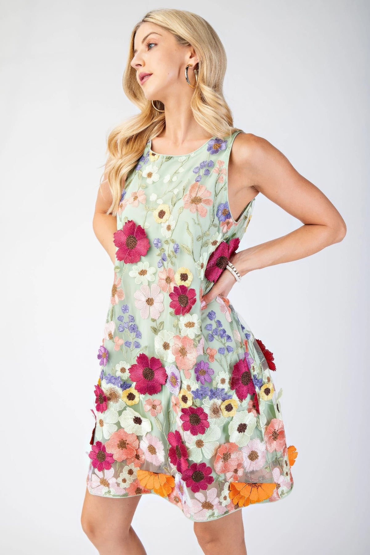 Délicate et accrocheuse, cette mini-robe brodée de fleurs 3D est une pièce remarquable pour les grandes occasions ou les sorties élégantes. Sa coupe sans manches et sa longueur mini confèrent fraîcheur et modernité à la silhouette, tandis que la broderie florale 3D complexe ajoute texture et dimension pour un look résolument raffiné. Confectionnée en polyester léger, elle offre un confort respirant sans compromettre la structure. Portée avec des talons ou des chaussures plates, cette robe allie élégance romantique et modernité.