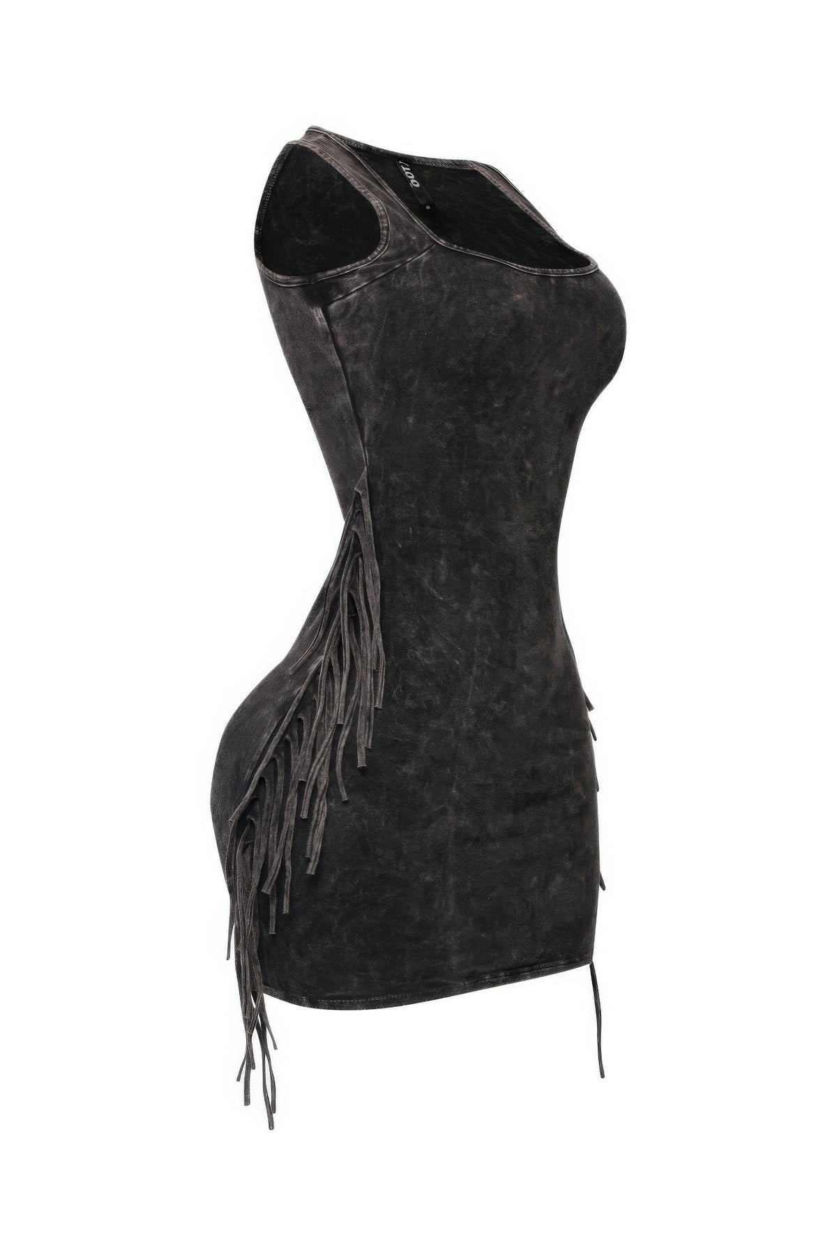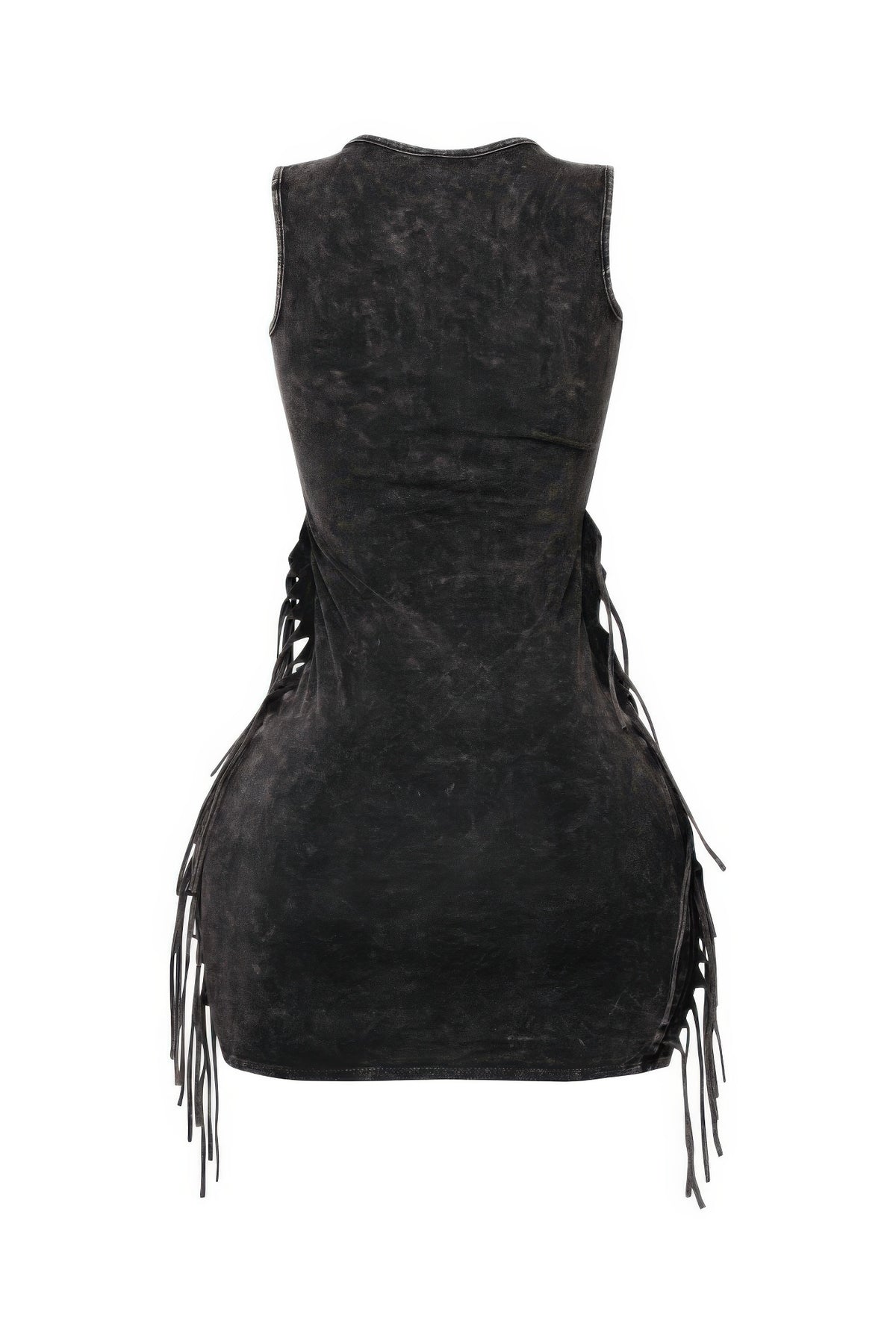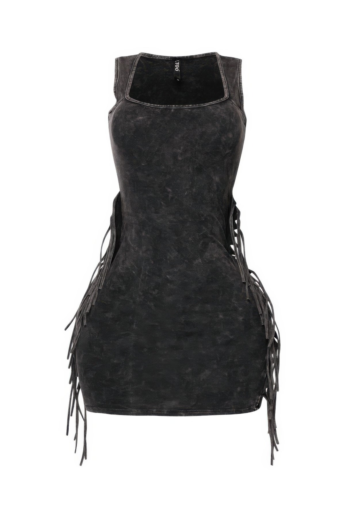 Ajoutez une touche d'originalité à votre look avec cette mini-robe à franges latérales délavée, conçue pour flatter votre silhouette grâce à sa coupe ajustée et confortable. Son encolure carrée et sa coupe sans manches créent une silhouette épurée et structurée, tandis que le délavage minéral lui confère un effet usé et décontracté. Les franges sur les côtés ajoutent du mouvement et une touche de personnalité. Confectionnée dans un mélange de coton doux et extensible, cette robe à enfiler épouse les formes sans être trop serrée. Non doublée et non transparente, elle est parfaite pour les festivals, les soirées décontractées ou pour un look original au quotidien.