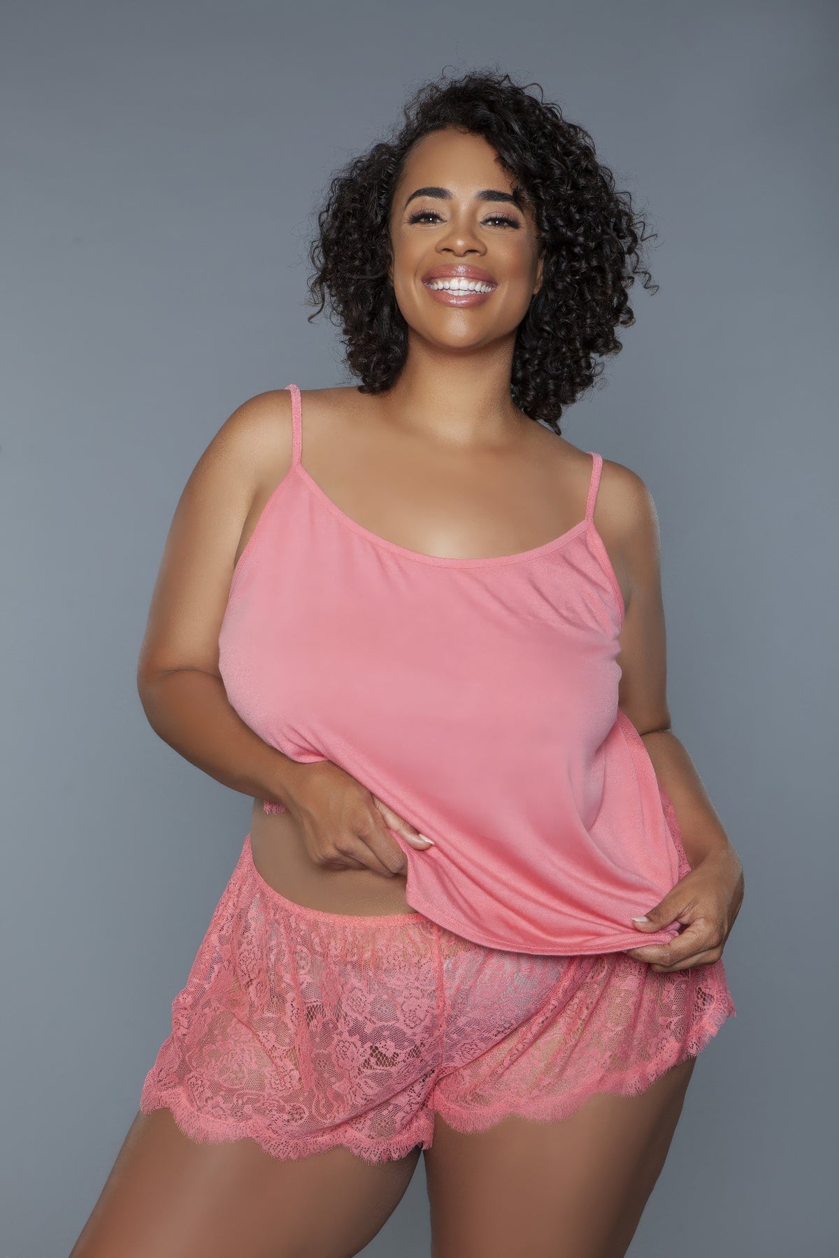 L'ensemble Peyton allie la douceur du jersey à l'élégance de la dentelle pour un look pyjama à la fois décontracté et raffiné. Ce caraco présente une encolure arrondie et des bretelles spaghetti réglables. Son design contrasté associe un devant en jersey lisse à un dos en dentelle transparente pour une touche d'élégance inattendue. Le short assorti en dentelle transparente, avec ses fentes latérales et sa taille élastique, offre confort et respirabilité tout en apportant une touche sensuelle. Cet ensemble allie confort et sophistication pour votre détente ou votre nuit de sommeil.