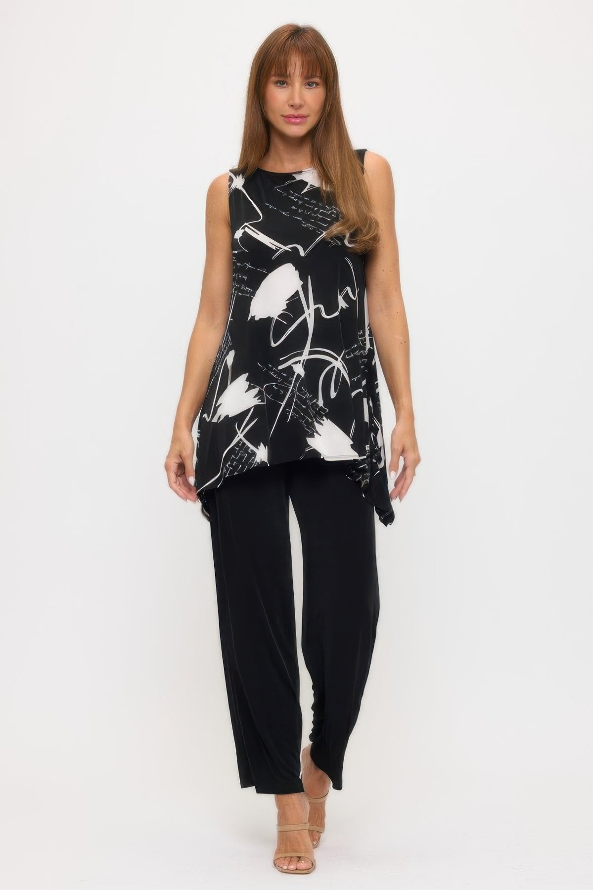 The Bns Boat Neck Shark Bite Tank Tunic is the ultimate blend of comfort and contemporary flair. Crafted from a silky polyester-spandex mix, this sleeveless tunic features a graceful boat neckline and a playful shark-bite hemline for added movement. The soft stretch fabric ensures a flattering drape and all-day comfort. Perfect for pairing with leggings or slim pants, it transitions easily from casual outings to relaxed evenings. Made in the USA for lasting quality and fit.