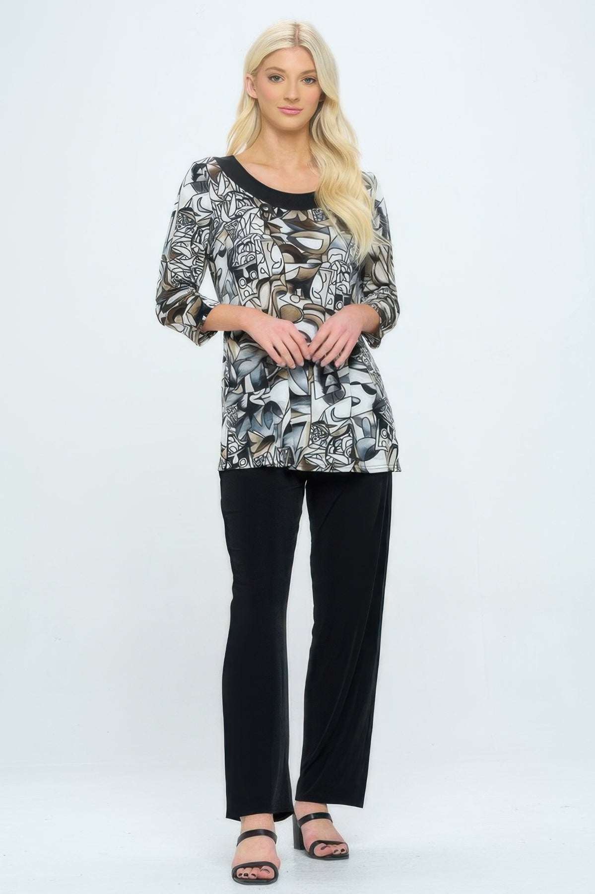Designed with comfort and creativity in mind, this abstract print tunic features a relaxed neckline and contrast detailing. The soft, stretch-enhanced fabric offers flexibility, while the quarter sleeves make it ideal for all-season wear. Unique abstract prints provide a modern edge to this everyday essential. Its tunic length and 11 oz weight make it substantial without being heavy. Proudly made in the USA, it blends function and fashion seamlessly.