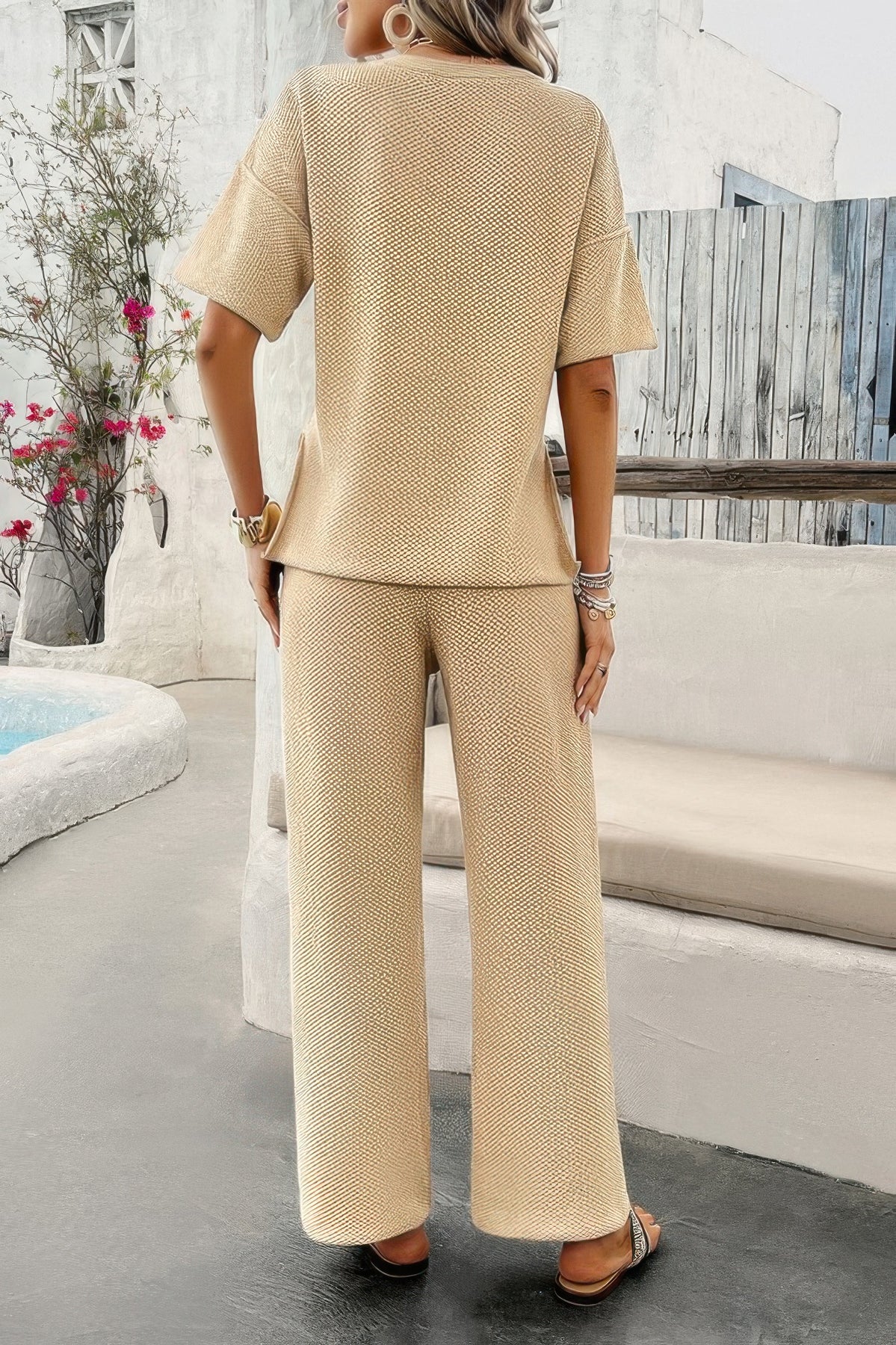 The Two Pieces Outfits Knitted Crew Neck Button Set combines chic styling with a relaxed fit for effortless wear. Crafted from 100% Polyester, it offers both comfort and durability. Design details include two pieces outfits knitted crew neck button set, making it a versatile choice for your wardrobe. Perfect for casual/ daily/outdoor/vacation/school/going out.. Pair it with your favorite bottoms for a laid-back look or dress it up with accessories for a more refined vibe. This piece seamlessly transitions from casual to dressy occasions.