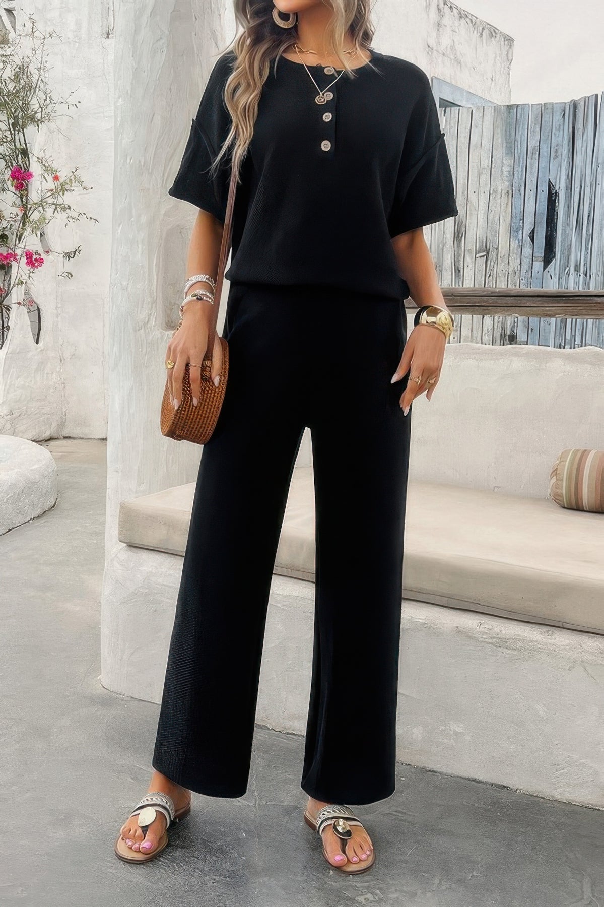• Two Pieces Outfits Knitted Crew Neck Button Set for added style and flair