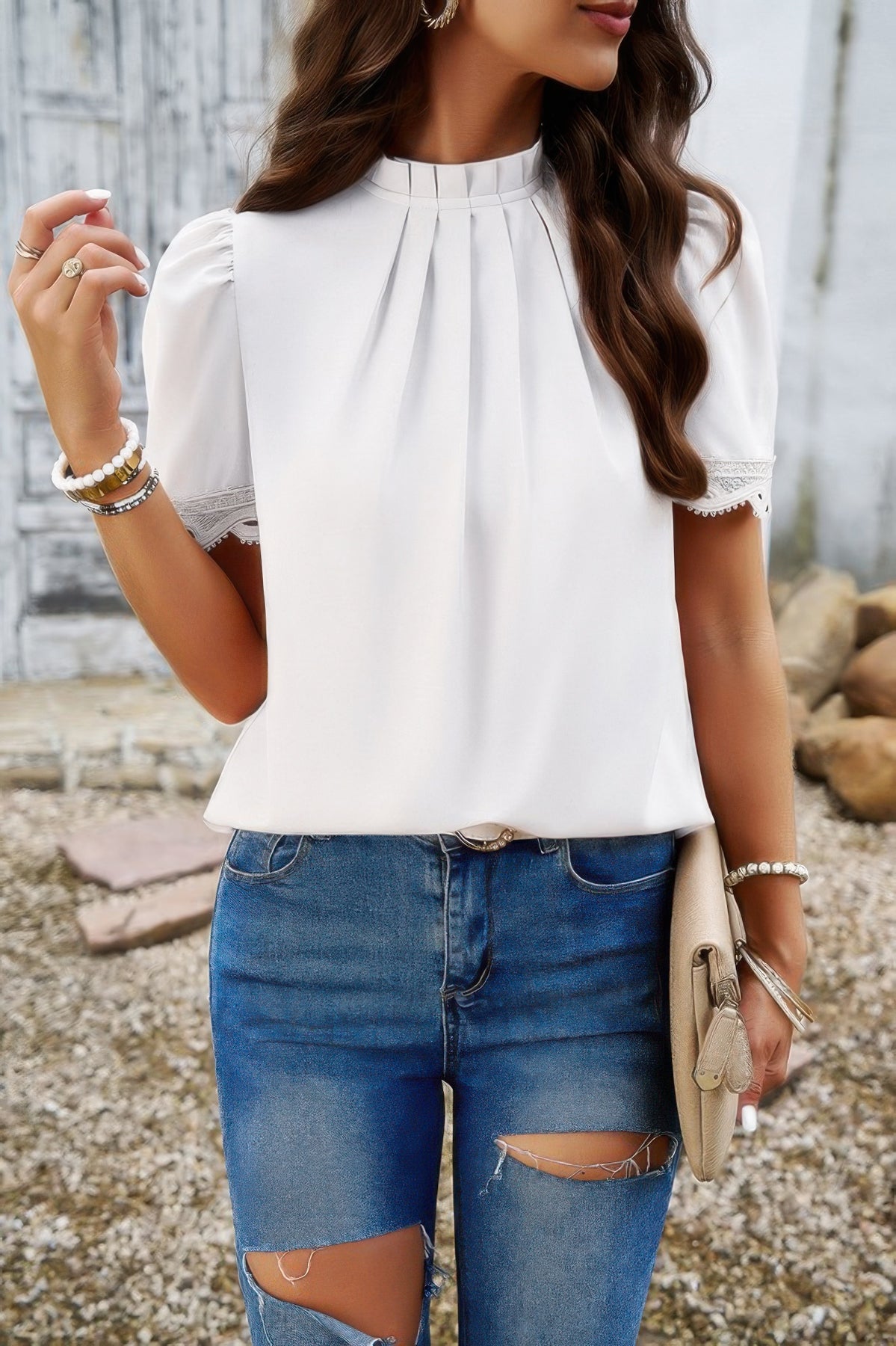 Crew Neck Solid Ruffle Loose Fit Dressy Elegant Shirt