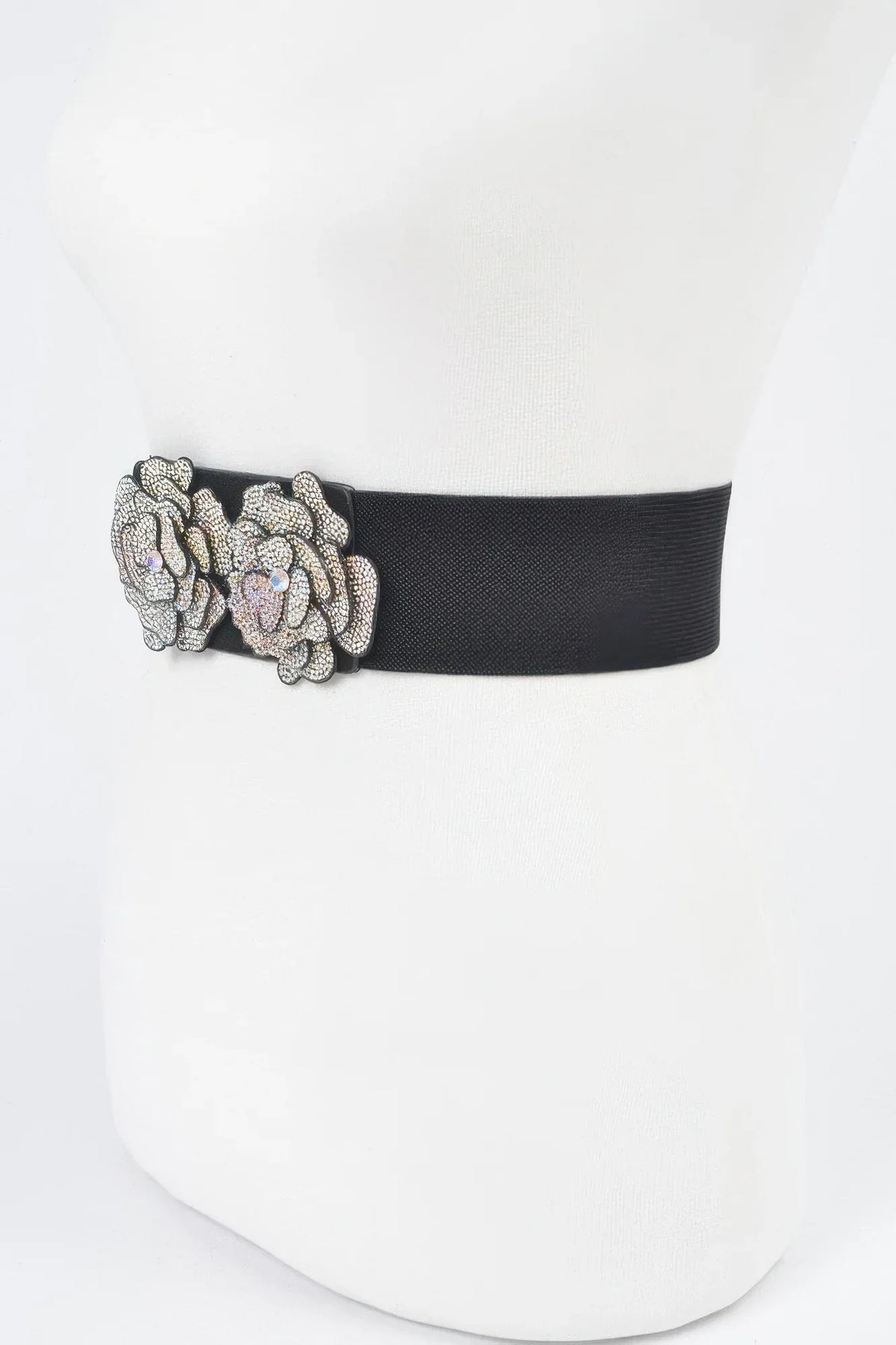 Description du produit : Ajoutez une touche d'éclat raffiné à votre tenue avec la ceinture élastique AB Stone Flower, un mélange saisissant d'élégance et de polyvalence. Cette ceinture extensible noire est ornée de deux fleurs en strass finement travaillées qui en font une pièce maîtresse remarquable. Avec son design élastique confortable et sa largeur de 6,3 cm, elle cintre joliment la taille tout en sublimant votre silhouette. Qu'elle soit portée avec une robe, un chemisier ou un pantalon taille haute, cette ceinture apporte une touche d'élégance instantanée et un charme remarquable.