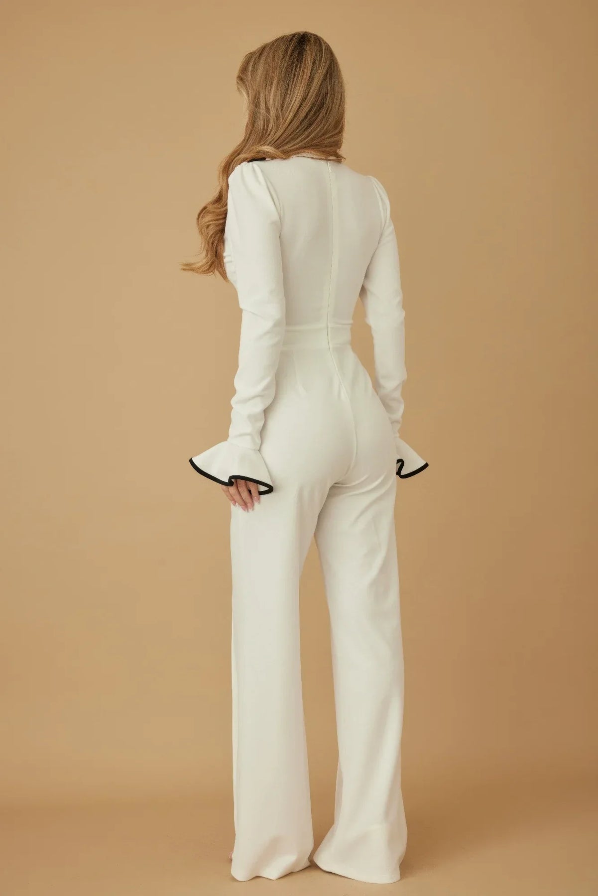Each order includes your carefully packaged ruffle pattern long sleeve jumpsuit, ready to enhance your collection.