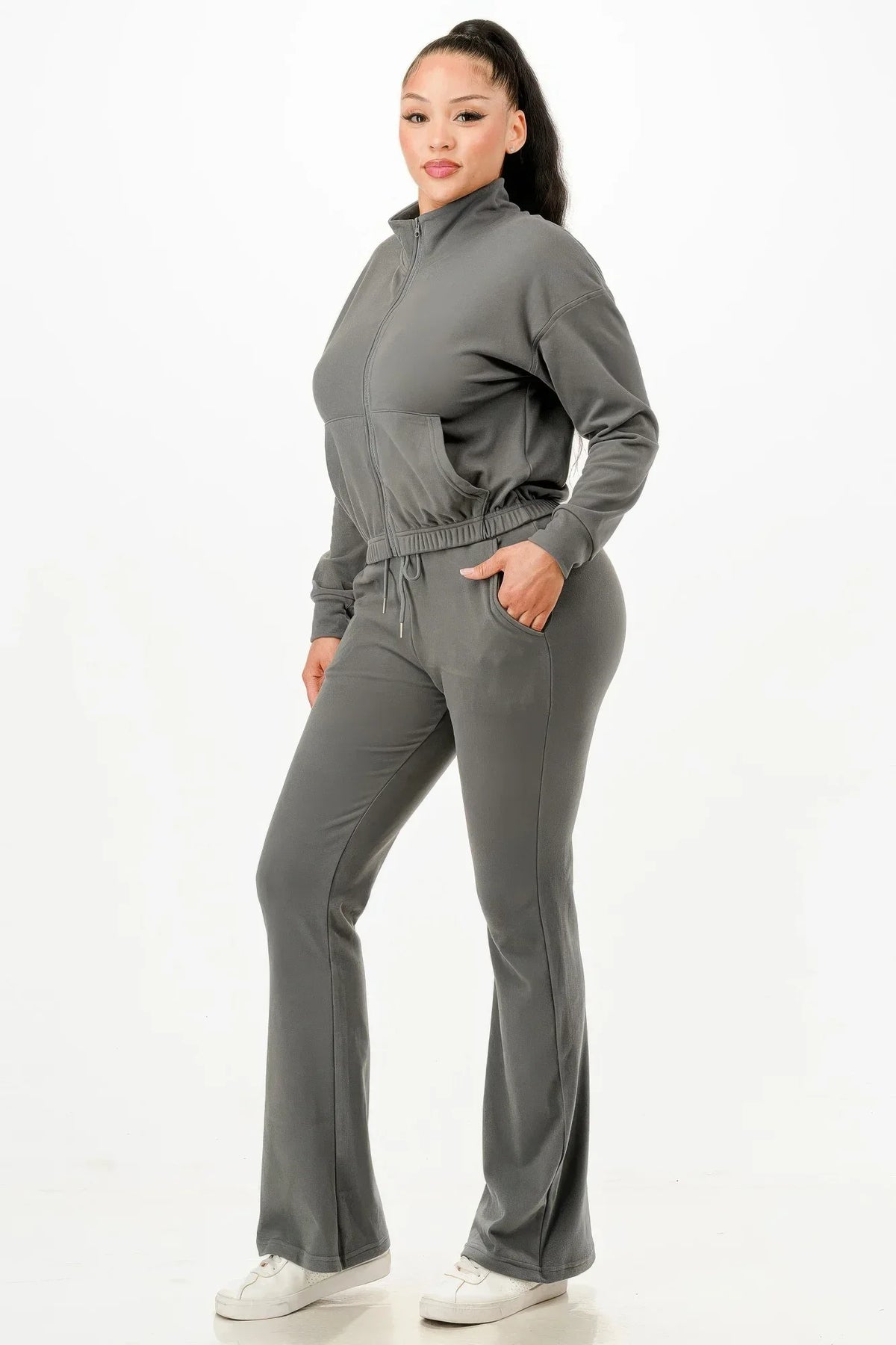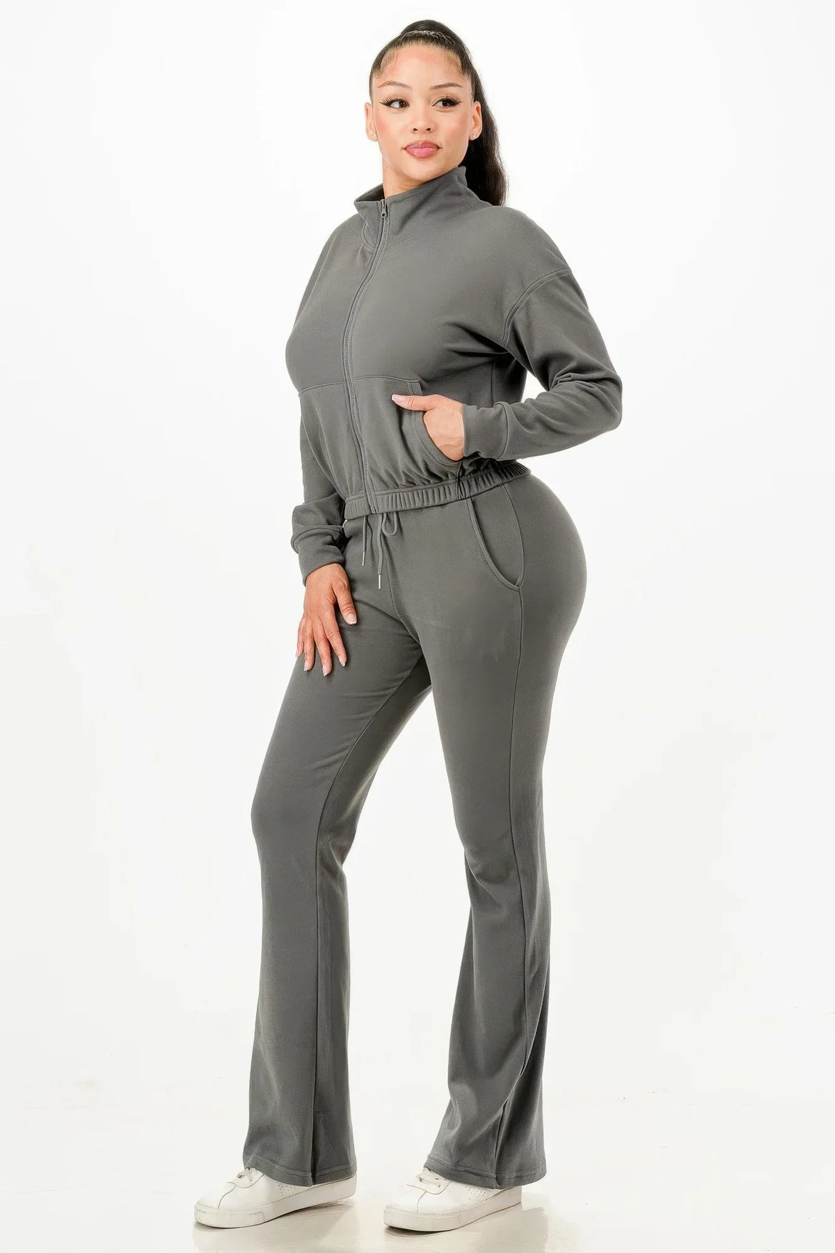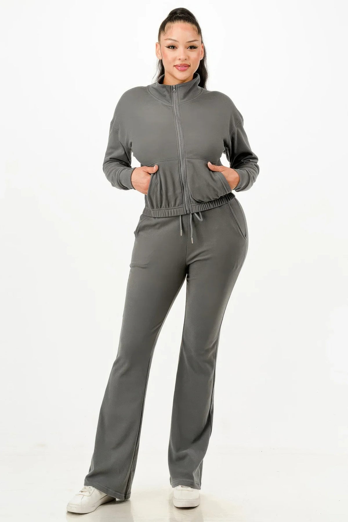 Each order includes your carefully packaged soft zipup track suit set, ready to enhance your collection.