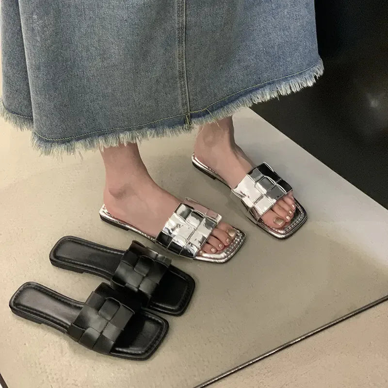 Sandales et pantoufles tissées d'été pour femmes (style français)
