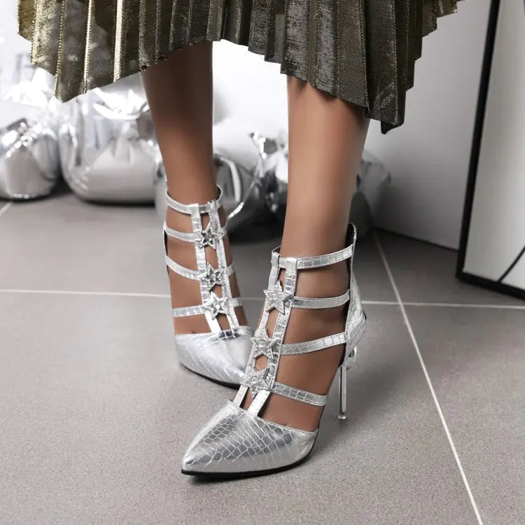 Sandales à talons hauts pointues et creuses à la mode pour l'été