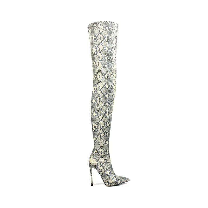 Bottes hautes à talons aiguilles pointus en peau de serpent pour femmes