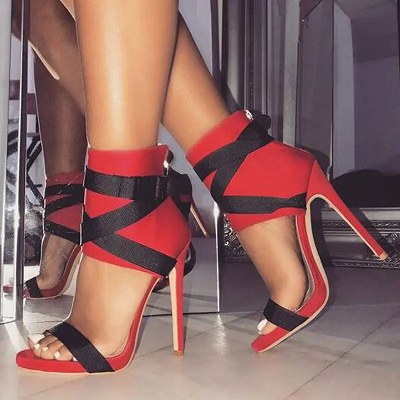 Sexy High Heeled Slingback Sandals with Cross Strap