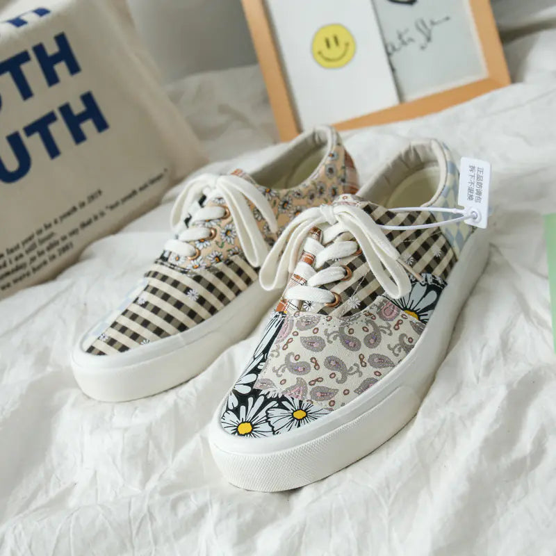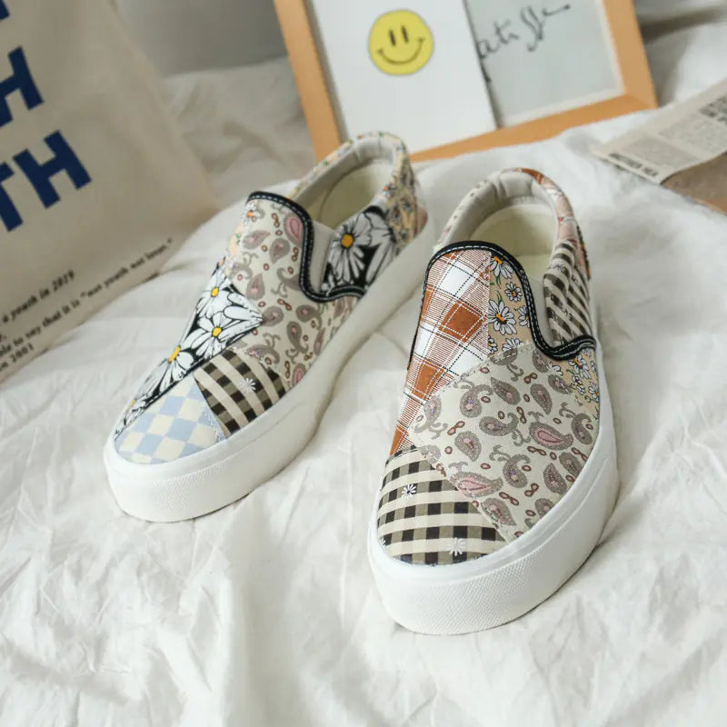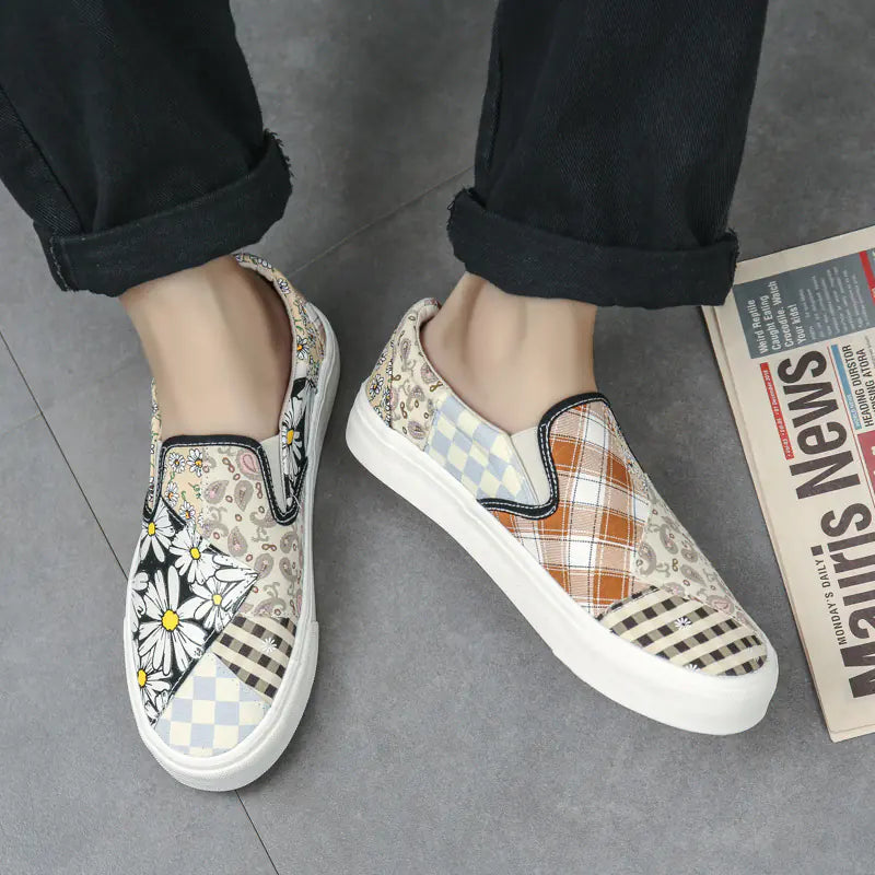 Step into style with our Spring New Color Patchwork Cashew Flower Couple Canvas Shoes, the ultimate combination of comfort and trendiness. Designed for adults, these slip-on canvas shoes are perfect for any casual outing or day-to-day wear.